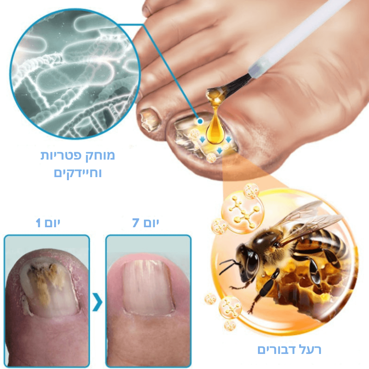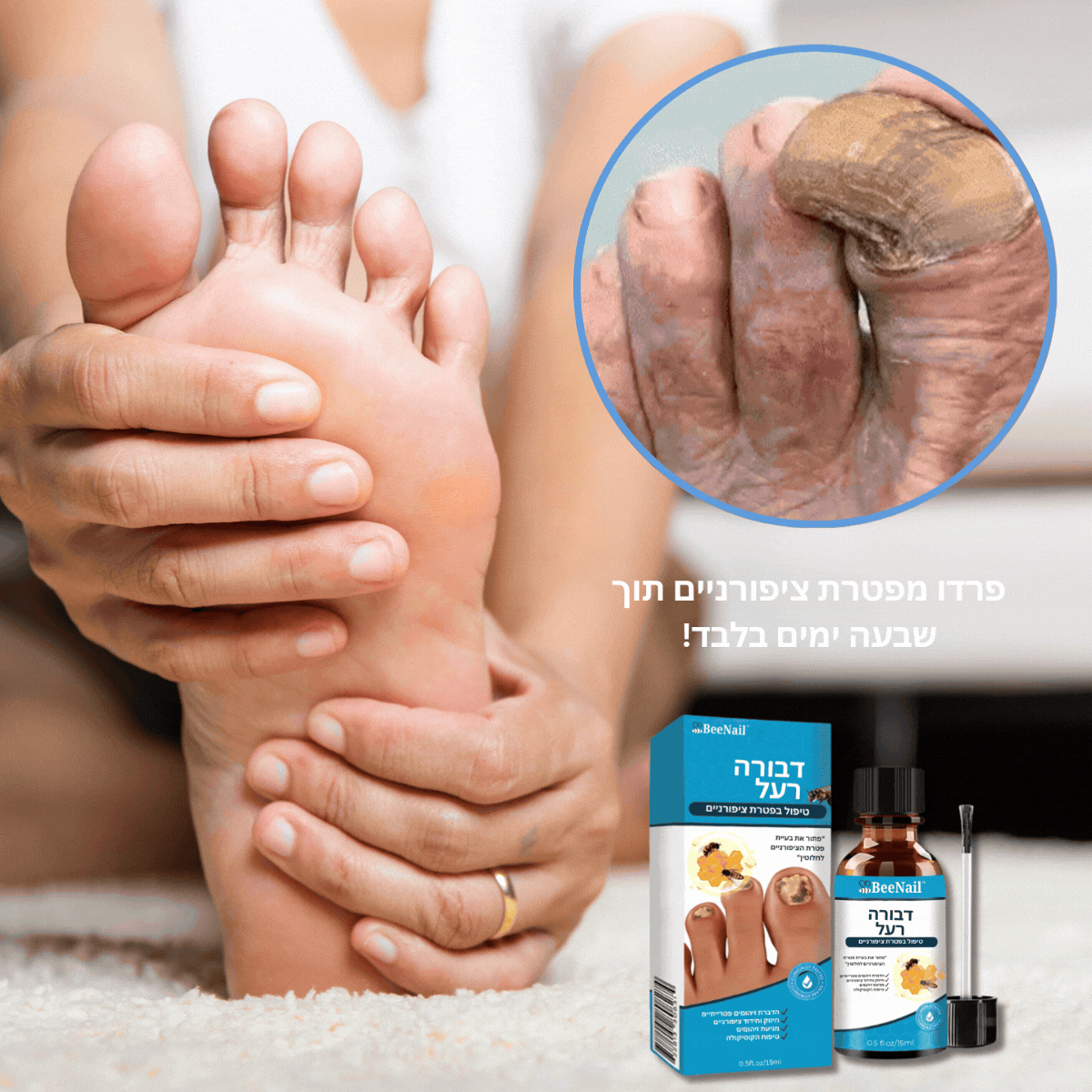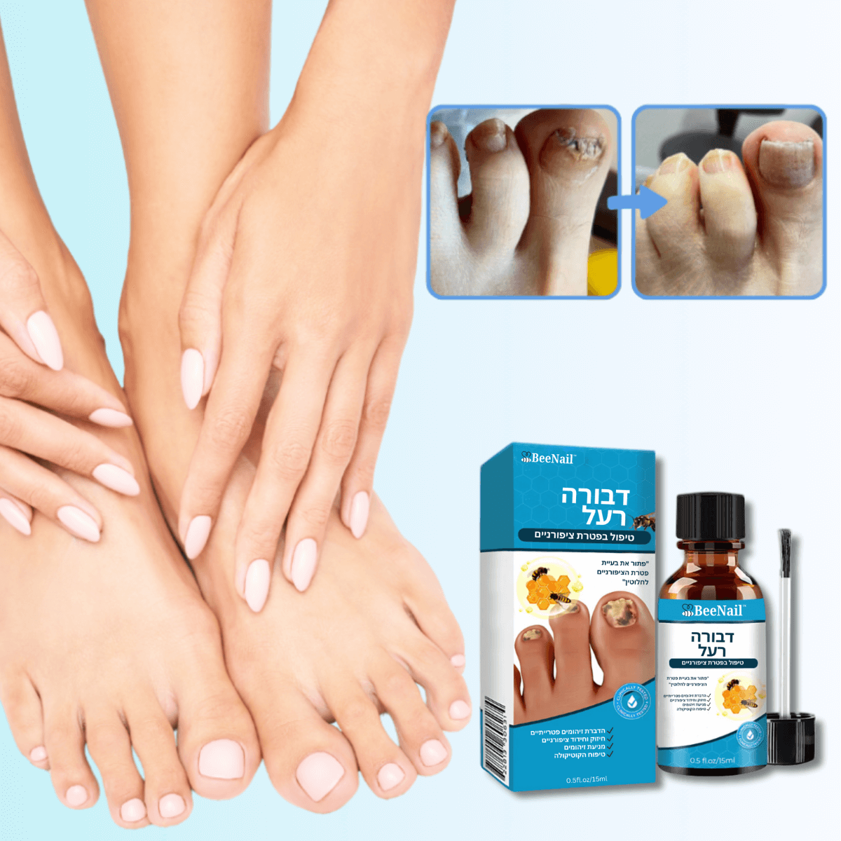 בין אם הגורם הוא לחות, הנעלה או שימוש יומיומי, BeeNail™ מספק תוצאות מרשימות בזמן שיא.